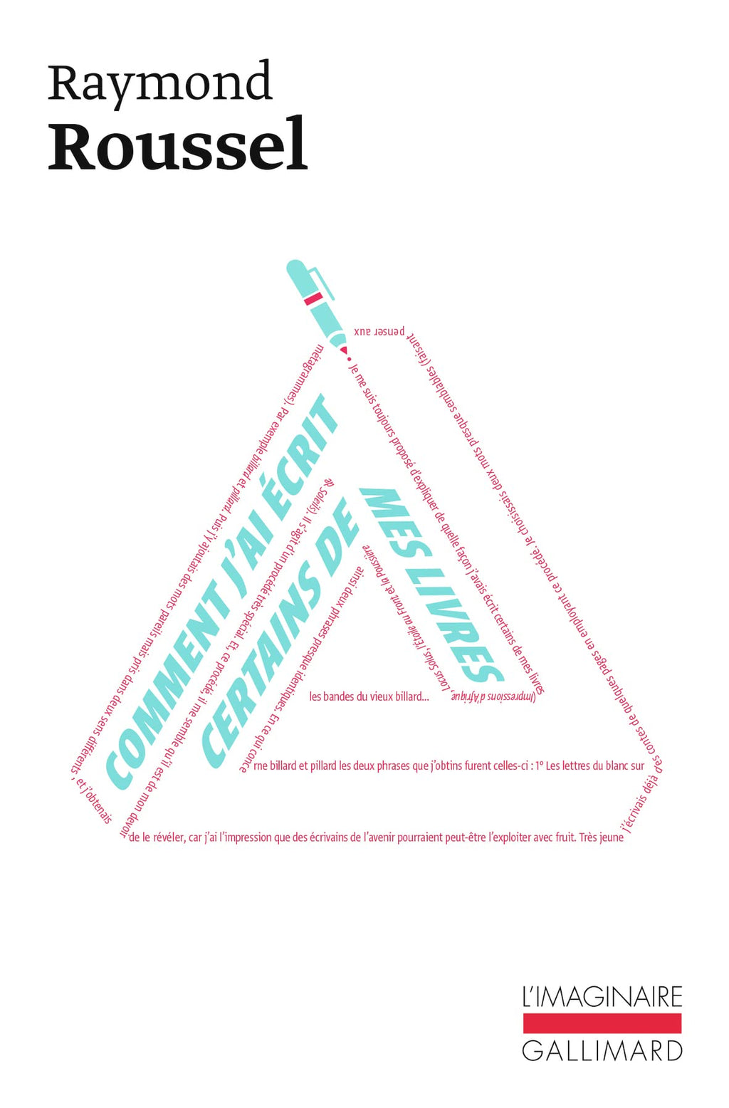"Je choisissais deux mots presque semblables. Par exemple billard et pillard. Puis j'y ajoutais des mots pareils mais pris dans deux sens différents, et j'obtenais ainsi deux phrases presque identiques. Les deux phrases trouvées, il s'agissait d'écrire un conte pouvant commencer par la première et finir par la seconde. Amplifiant ensuite le procédé, je cherchai de nouveaux mots se rapportant au mot billard, toujours pour les prendre dans un sens autre que celui qui se présentait tout d'abord, et cela me fournissait chaque fois une création de plus. Le procédé évolua et je fus conduit à prendre une phrase quelconque, dont je tirais des images en la disloquant, un peu comme s'il se fût agi d'en extraire des dessins de rébus", Raymond Roussel.