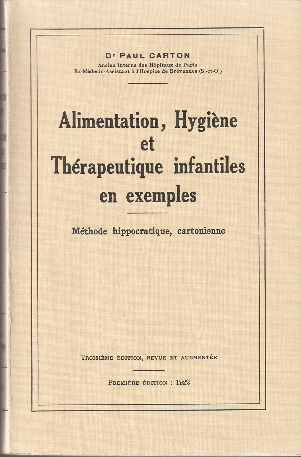 Dr Paul Carton,... Alimentation, hygiène et thérapeutique infantiles en exemples : Méthode hippocratique, cartonienne... 3e édition, revue et augmentée