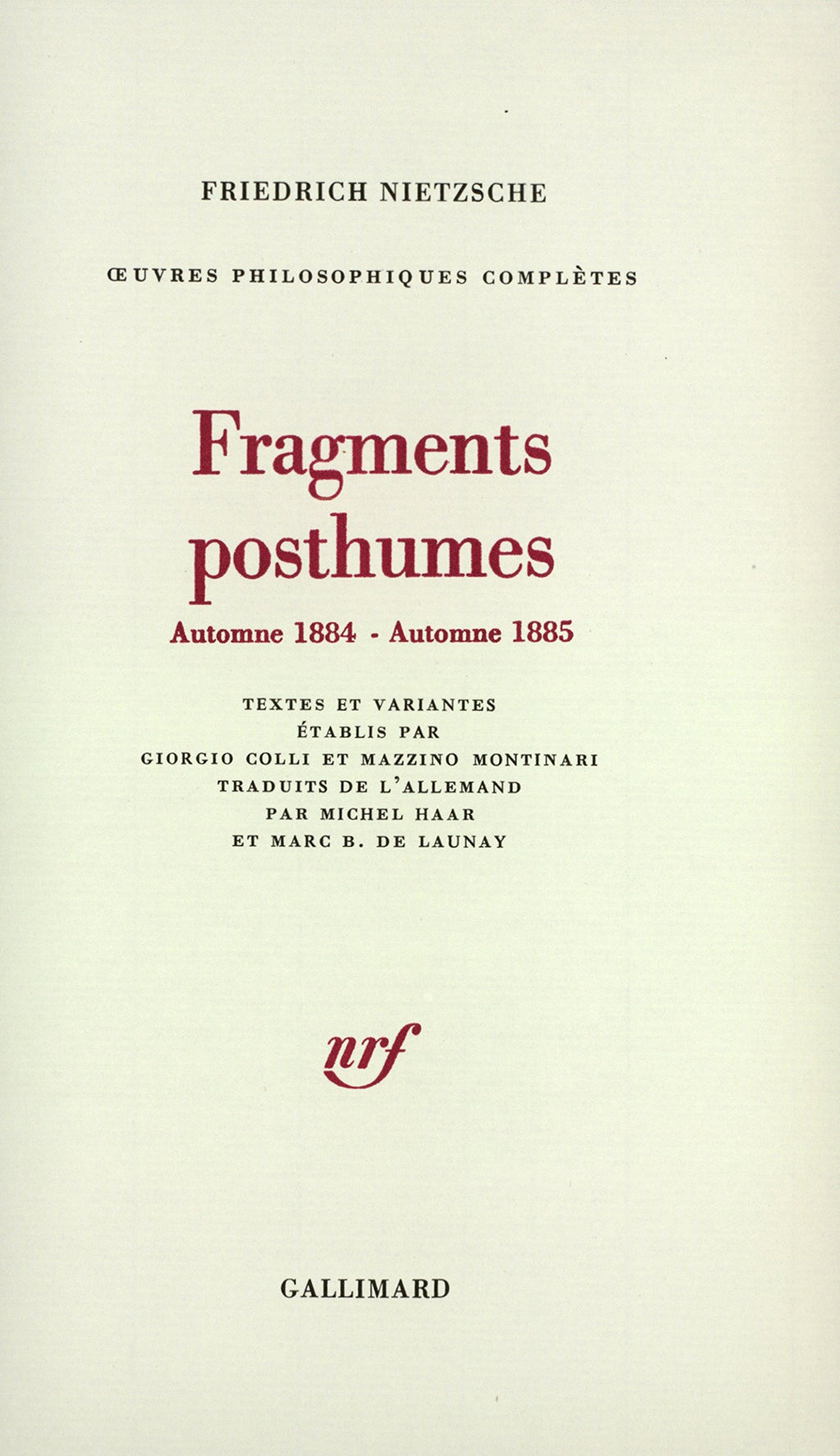 | Auteur | Nietzsche, Friedrich |