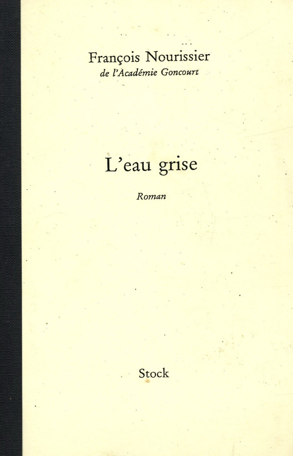 En 1950, impatient de mettre ma vie en mots, j'avais publié L'Homme humilié, un essai sur les déplacements de populations en Europe (je " faisais de l'humanitaire ", en somme) que le Pr Massignon avait préfacé. Mais L'Eau grise, à l'automne 1951, fut mon premier roman. On y retrouve mes occupations et préoccupations de l'époque : crise d'un trop jeune couple qu'aucune douceur enfantine ne réchauffe encore, présence un peu fantomatique des réfugiés et DP's (displaced persons) en faveur de qui je travaillais. On aurait pu voir aussi dans l'emprunt à L'Épithalame, de Jacques Chardonne, d'une citation d'où j'avais tiré mon titre, quelque pétition de principe en faveur d'une esthétique et d'idées qui n'étaient pas les miennes. Les jeunes gens sont ainsi : ils se jettent à la littérature comme des chiens fous sur un morceau de bidoche. Vingt-trois ans, un premier roman, un parrain vaguement compromettant, la rage de faire du romanesque avec tout : je n'allais quand même pas me plaindre ! Un demi-siècle a passé... Je suis encore là ? Il y a peut-être un peu d'impudence à ne m'être pas tu encore, j'en suis conscient. Mais quoi ! En cinquante ans on en trace des chemins ! On monte le mur, pierre à pierre. Inutile d'interpréter cette intéressante maçonnerie : contentons-nous de ne pas ébranler la base, le socle, le pied. " Le pied du mur " : il existe même une expression qui dit bien où j'en suis, car rééditer son premier roman, c'est y être parvenu, ou revenu. F.N.