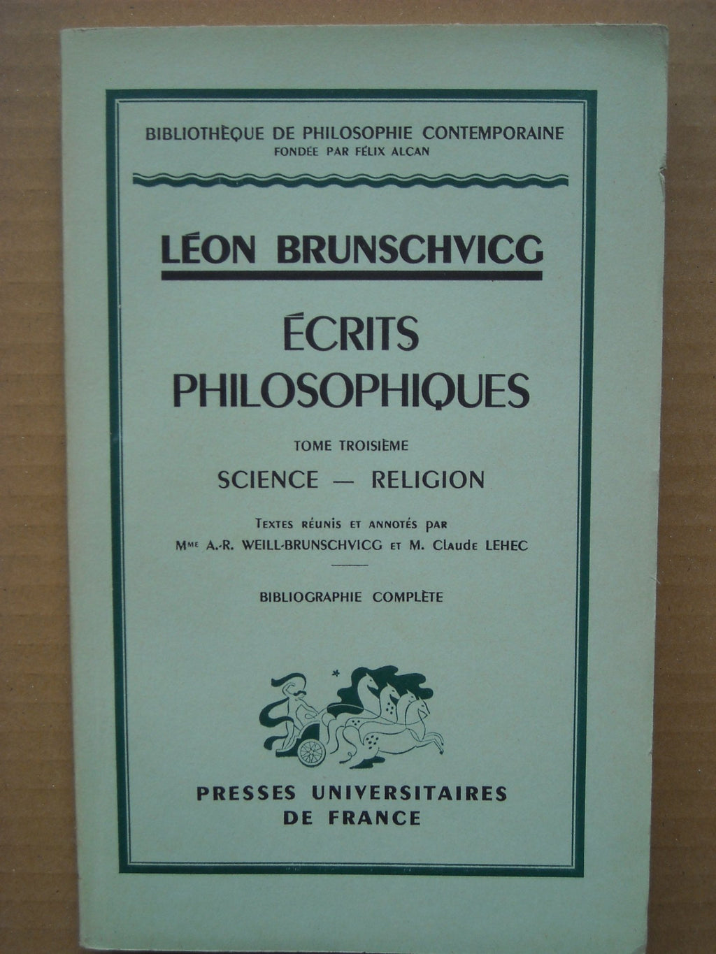 Léon Brunschvicg. Écrits philosophiques : . Tome 3e. Science, religion. Textes réunis et annotés par Mme A.-R. Weill. Brunschvicg et M. Claude Lehec, suivis d'une bibliographie complète, par M. Claude Lehec