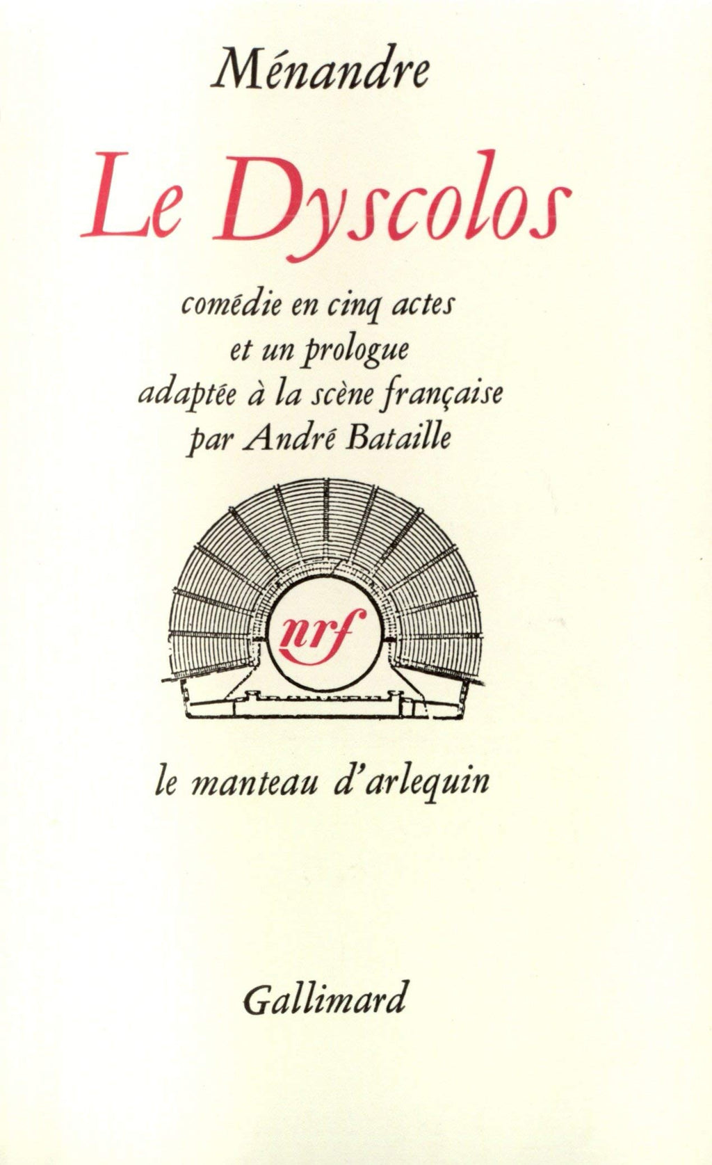 Ménandre. Le Dyscolos : @ , comédie en 5 actes et un prologue, adaptée à la scène française par André Bataille