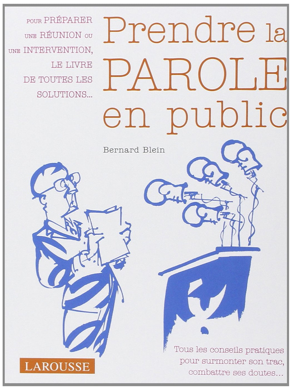 Pour tous ceux qui veulent surmonter leur trac avant de prendre la parole en public : toutes les situations de prise de parole : réunion professionnelle, discours devant un large public, jury d'examen, entretien d'embauche, réunion familiale... les règles d'or : les idées fondamentales de la communication orale (regarder son public, être soi-même, bien utiliser les outils, cibler ses propos...), les conseils et astuces pour vaincre le trac avant et pendant l'intervention (s'entraîner, apprendre à se détendre, anticiper la situation...), des témoignages et des cas concrets pour illustrer les comportements à adopter (les gestes positifs, le sourire...), les erreurs à ne pas commettre (lire son discours, improviser...), une présentation très claire sous forme de dossiers à la double page, et aussi de nombreux dessins humoristiques pour une lecture ludique et agréable.