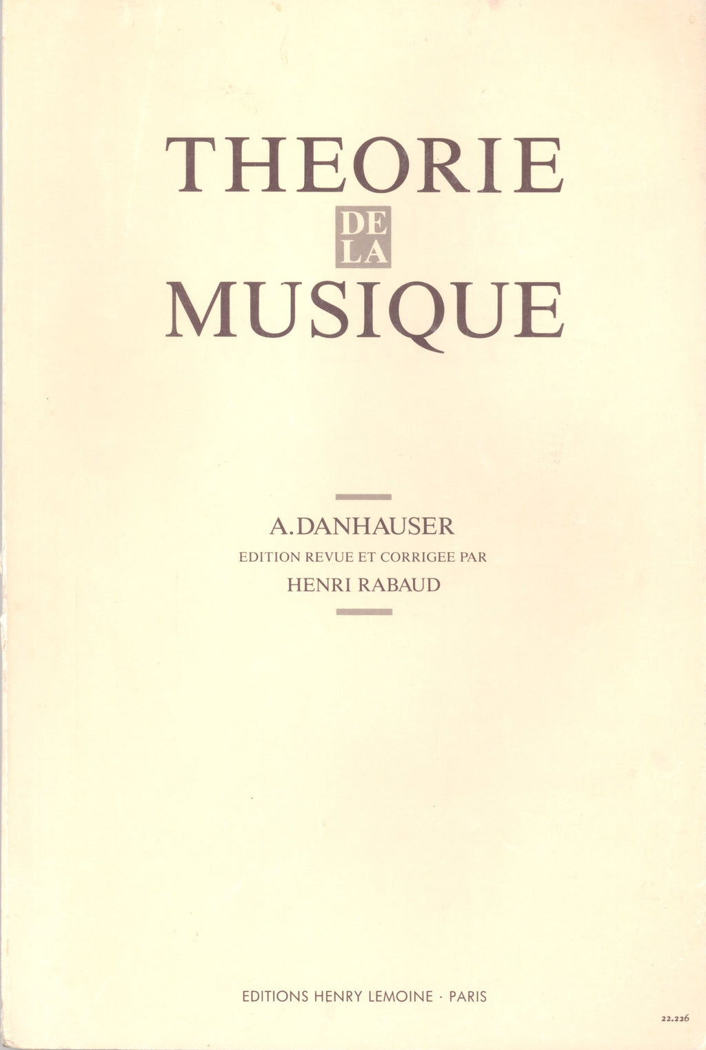 Theorie de la musique. Edition revue et augmentée/corrigée.